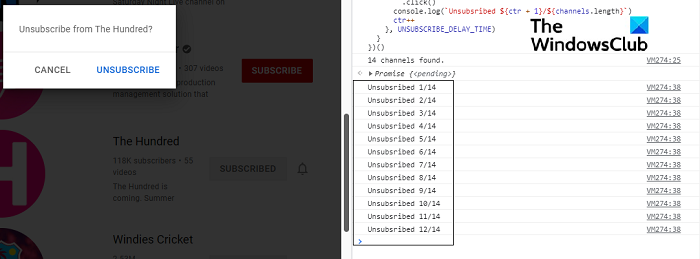 You will observe YouTube channels being unsubscribed one after the other.